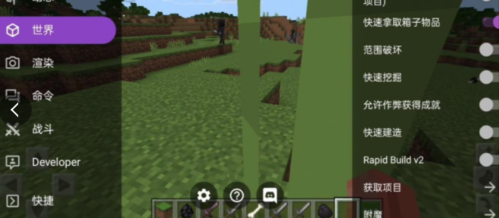 可开启飞行或保持飞行模式,后者允许玩家穿透方块;