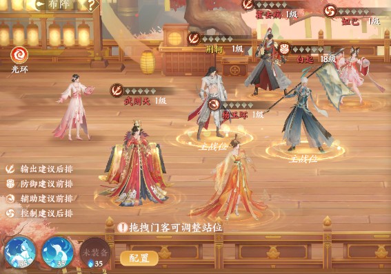 2、常规布阵通常将输出与控制门客放置在后排,将防御与辅助门客安排在前排,以实现攻防效率的最大化;