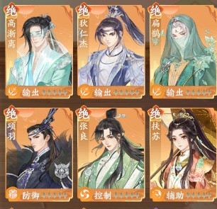 1、门客自身带有不同标签,在布阵界面可以清晰看到输出、防御、控制、辅助四种分类;