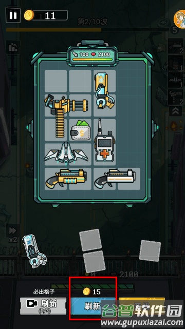 3、普通刷新每次消耗15货币,有概率出现格子;货币不足时可通过观看视频补充。