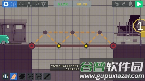 全部搭建完毕后,点击右上角绿色播放按钮即可测试桥梁承重性能。