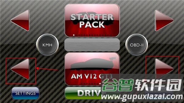 1、进入游戏后,利用屏幕两侧按钮切换车辆选择。