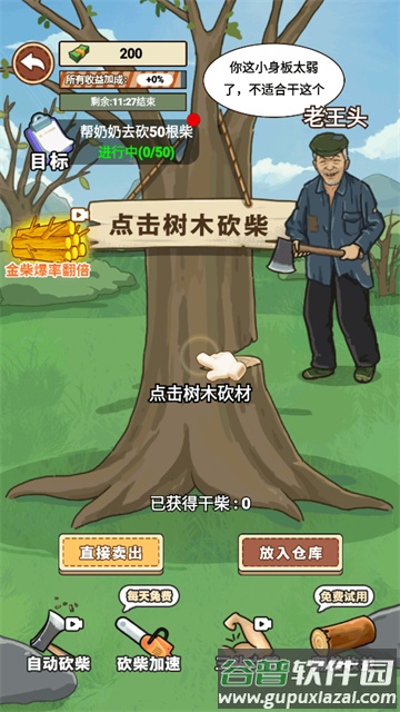 3、前往树林砍伐木材,为生火烹饪准备好燃料。