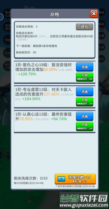通关25层后解锁轮回塔,挑战轮回塔可获得点数用于升级命格。