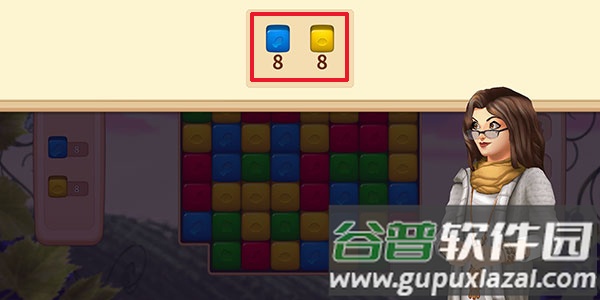 1、进入游戏后,经过简短引导便会来到第一关;界面顶部会显示本关的消除目标,例如需要消除蓝色与黄色砖块各八个。
