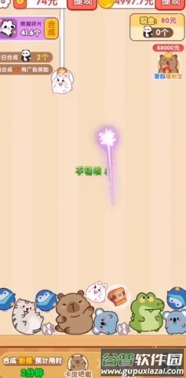 5、合成特定小动物可积累红包奖励数值;