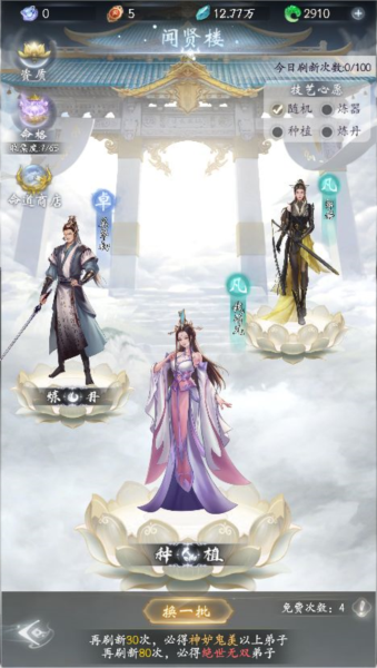 闻贤阁是宗门内用于招募新弟子的建筑;玩家可在此招募前来拜访的修仙者。