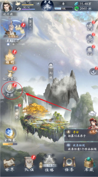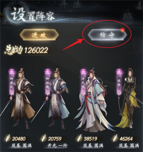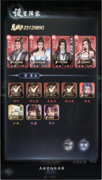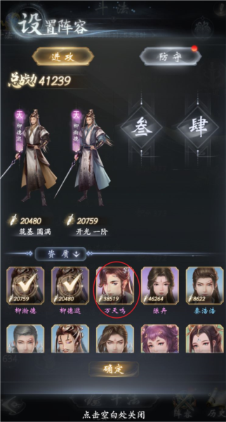 点击弟子图标,设置好上阵弟子阵容后,点击确认保存。