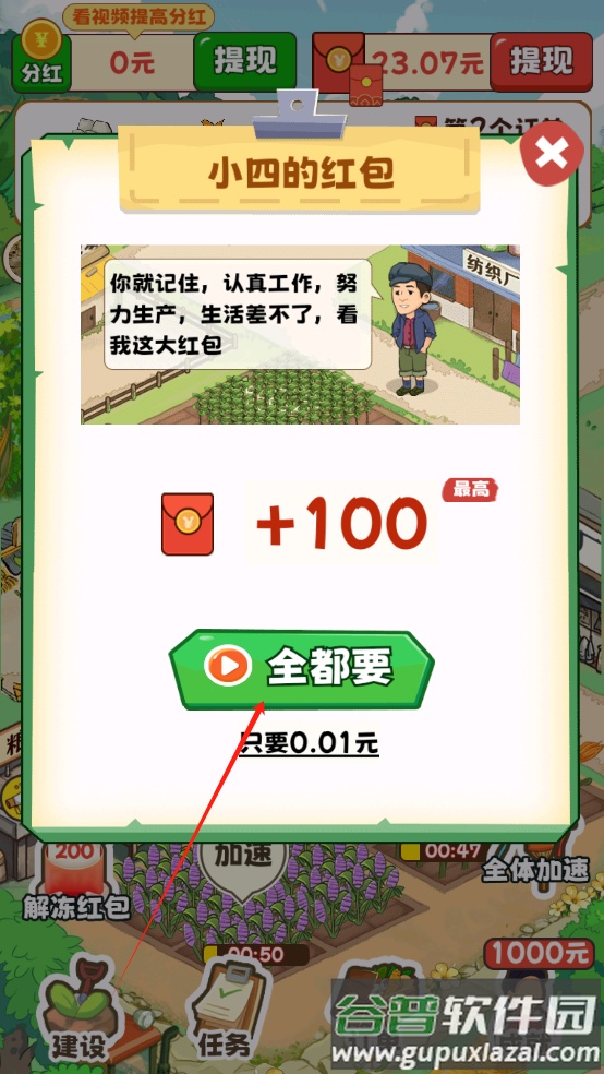 1、在游戏中进行小镇建设,例如种植农作物,就能直接获得红包奖励;