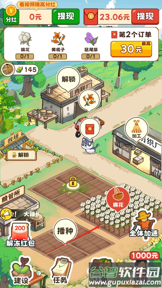 3、完成游戏内发布的订单任务同样能获取红包,建议多种植作物以备订单所需;