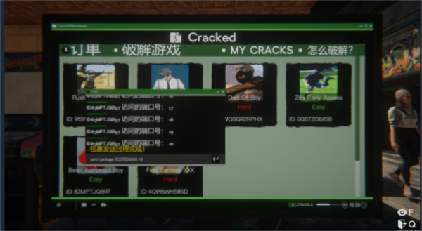 6、选择一个目标游戏进行破解;例如选择最右侧的游戏,在CMD中输入 send package 游戏ID 包裹数量;游戏ID在下方列出,注意大小写;包裹数量可随意设定,但不宜过大,频繁发送可能导致冷却并损失进度,难度越高越易触发冷却。