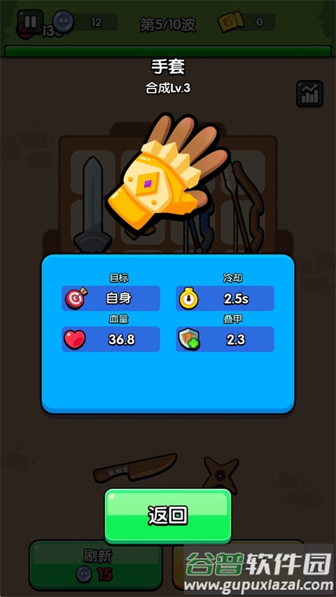 手套:提升周围单位的攻击速度,同时能为角色叠加护甲。