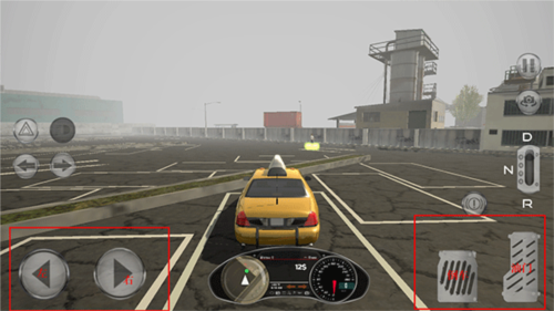 2.进入驾驶界面后,左侧虚拟键控制方向,右侧控制油门与刹车;