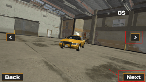 1.游戏开始时,先选择一辆喜欢的出租车,点击箭头切换车辆,选定后点击“next”确认;