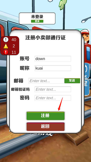 3、在注册页面填写账号、昵称、邮箱及密码,点击提交即可完成注册。