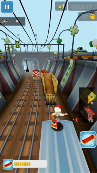 1、经典跑酷玩法等你加入,操作依靠简单的屏幕滑动,持续收集道具,一路冲刺到底。