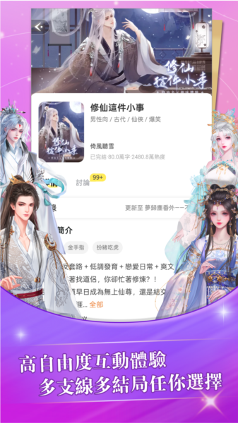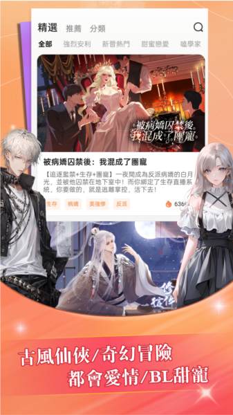 题材包罗万象,从古典传说到现代都市恋情,从充满想象的奇幻之旅到甜蜜的耽美故事,甚至包含“奇葩说”与“末世求生”等独特主题。角色类型多样,无论是气场强大的总裁还是幽默搞怪的主角,人气偶像或是狂热粉丝,都能在这里找到。