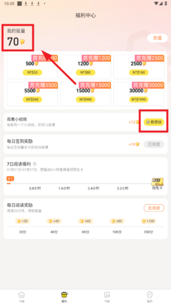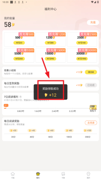 打开游戏,在主界面找到书城入口并点击进入,随后选择福利中心。