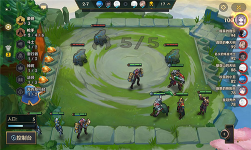 4、小小英雄的等级与血量:玩家操控的小小英雄初始拥有100点生命值,战败时会根据存活敌方棋子的数量与等级扣除血量,生命归零则游戏结束;英雄等级决定了可上阵棋子数量(人口上限),消耗金币可购买经验进行升级。