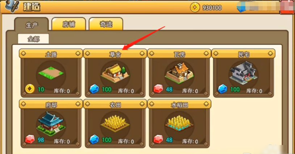 2、打开生产页面,从中选择你想要建造的建筑类型。