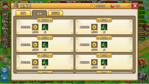 6、试练塔是检验村长实力的场所,也是获取宝石的重要途径,快来接受挑战吧!