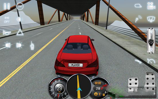 3、操作界面还原真实驾驶布局,包括按钮、档位、方向盘等设定,追求贴近现实的操控感;