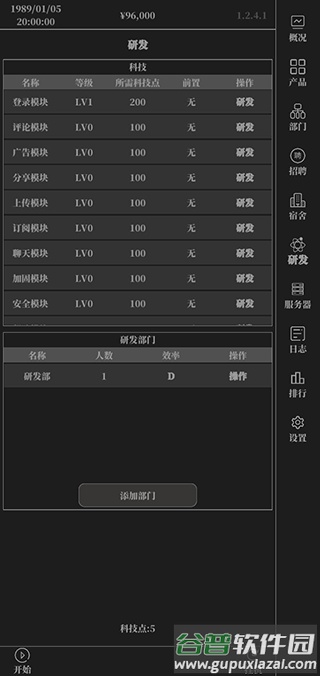 3. 将研发部门置于内部,开局先安排一人以产生科技点。