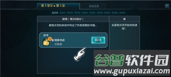 7、首个任务需要前往书店购买教材,点击场景中的感叹号标识。