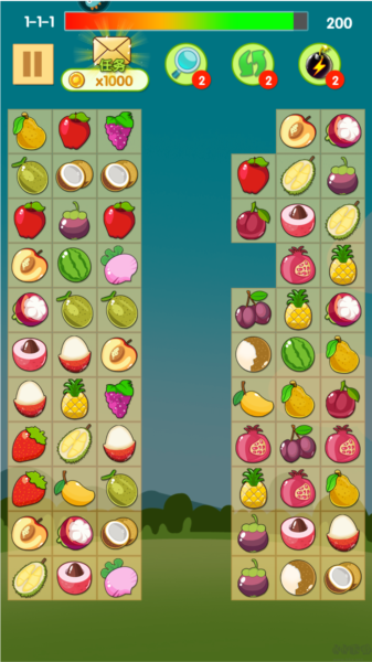 1、经典连连看玩法,将相同水果连接起来进行消除。