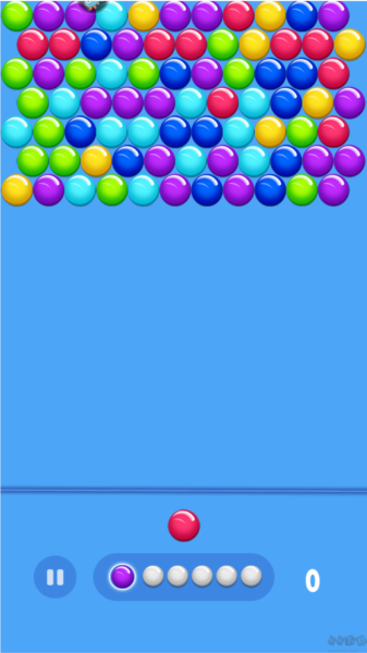 2、泡泡龙模式,向顶部发射小球,三个或以上同色球相连即可消除。