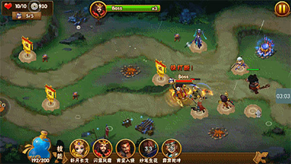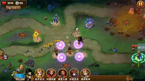 以经典塔防战斗还原三国宏大战场,通过丰富武将搭配再现千变万化的战争局势。