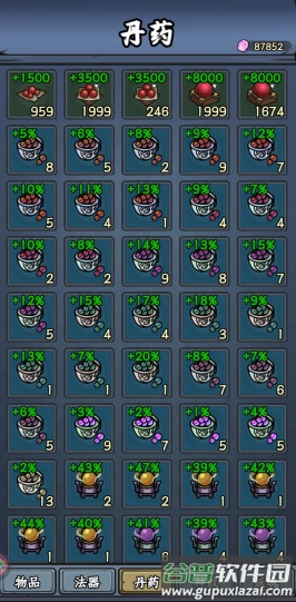 3、投入材料的总数量,即整体炼丹时长,会影响最终产出的丹药数量;材料越多,成丹越多;升级药炉可缩短炼丹时间,但不会减少产出数量。