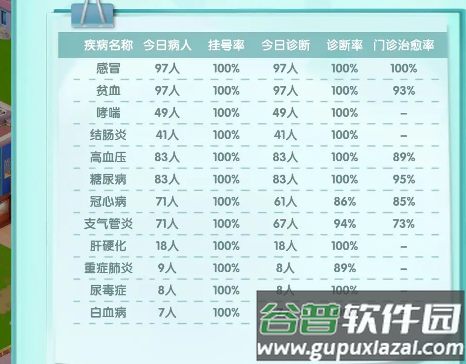 该病人最终成功出院并产生收益的概率,是确诊率与治愈率的乘积,即82.5%乘以62%,约等于51.15%。疾病等级越高,治愈难度越大,但治愈后的收益也显著增加。在游戏后期,感冒治愈收益仅为31,而白血病可达3636。因此,保证高等级疾病的治愈率是提升利润的核心。