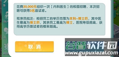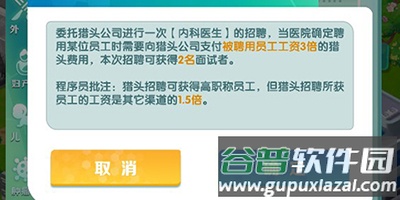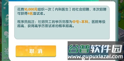 (2)名校招聘更适用于游戏前期,随着医院等级提升,其费用也会增加;使用该渠道的主要目标是招聘拥有“硕士”学位且临床职称为“住院医师”的医生;在达到二级丙等之前,建议每个科室配备至少两名这样的医生作为重点培养对象;一旦他们临近临床职称考试,便集中资源进行培养,直至其晋升为主任医师;不直接招聘博士或博士后的原因在于,他们的初始临床职称较高(博士为主治医师,博士后为副主任医师),而游戏中,初始临床职称越低的主任医师,其月薪也越低,这有助于节约医院运营成本。
