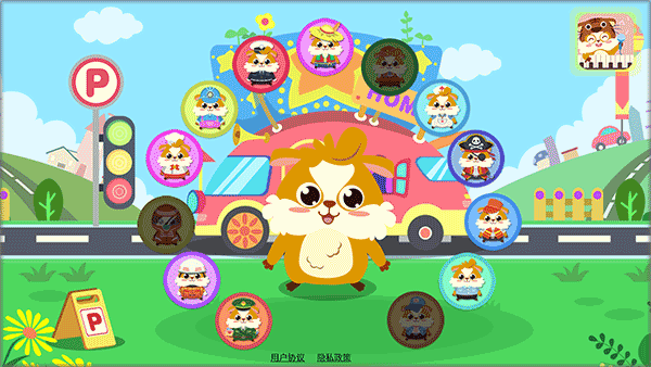 1. 下载安装儿童益智学汽车手机版,进入游戏后点击画面人物,选择喜欢的场景开始游戏。