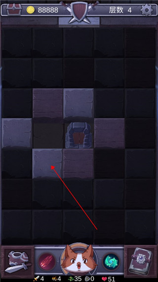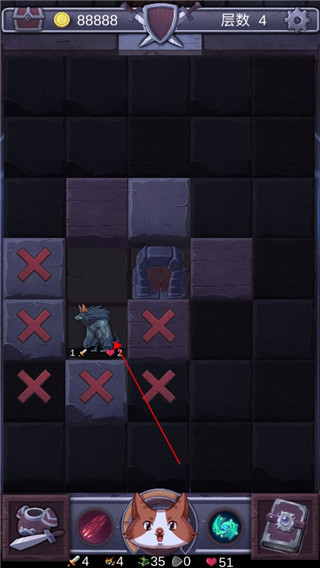 3、当怪物出现时,其周围的方块将变为不可探索状态,点击怪物进行攻击;只有消灭当前怪物,才能恢复区域的探索功能。