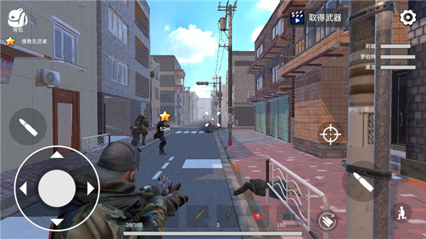 5、点击开始游戏后,使用左侧虚拟摇杆控制角色移动,右侧按钮负责瞄准与射击。