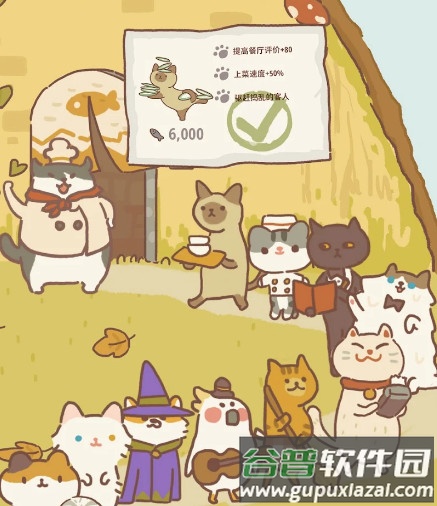 餐厅每日会发布不同任务,达成目标后不仅能收获顾客的星级评价,还能得到大量小鱼干;通过逐步解锁各类菜品,也能从顾客用餐后获得收益。