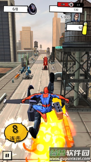 8、操作蜘蛛侠像跑酷一样避开障碍,完成目标;