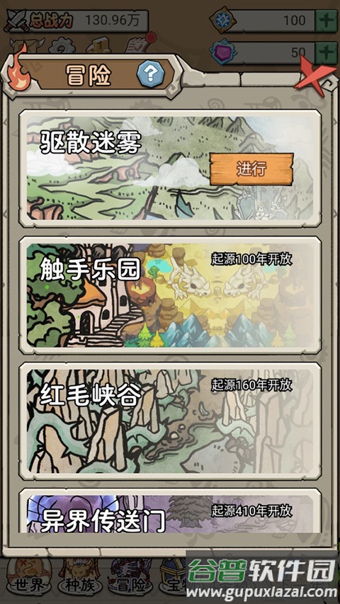 6、游戏内还准备了四种冒险玩法:驱散迷雾、触手乐园、红毛峡谷与异界传送门,分别可获取宝物、幸运星、符文及纹章等奖励。
