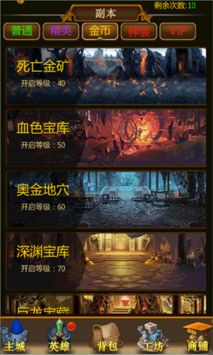 48级开放,主要获取用于升级宝物和翅膀的注灵石。遇到高价值目标时,可选择更高难度模式挑战。高级VIP享有一键完成特权。