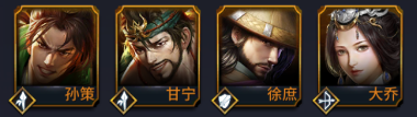 阵容二:孙策、甘宁、徐庶、大乔。典型的冲锋枪兵组合,能在开局建立兵力优势并持续压制;搭配盾兵可强化防线并保障后期输出。