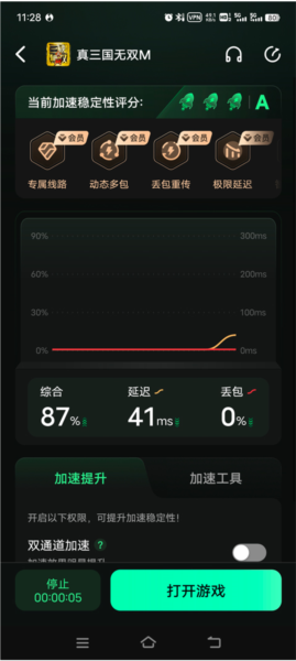 2、加速完成后,点击下方打开游戏选项;