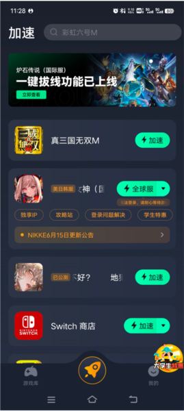 1、在本站下载真三国无双M游戏,该游戏需配合加速器启动。打开奇游加速器,搜索并找到游戏,点击右侧加速按钮;