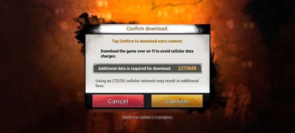 3、首次进入游戏需下载约3370MB的数据文件,请耐心等待下载完成;