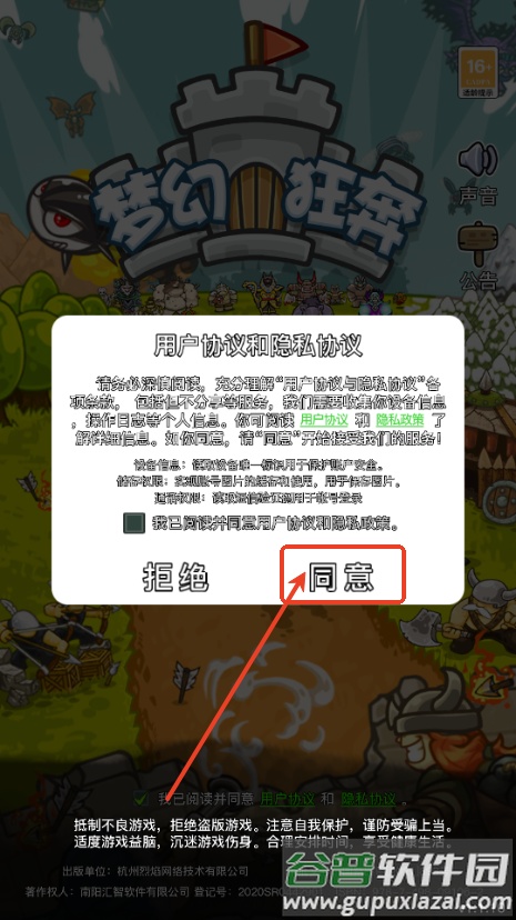 1、进入游戏后,首先阅读并同意相关游戏政策。