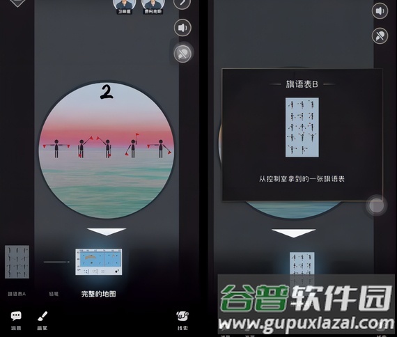 1. 左角色卫斯里与右角色费利克斯分头行动;左侧可收集地图碎片与旗语表A,右侧获得旗语表B;