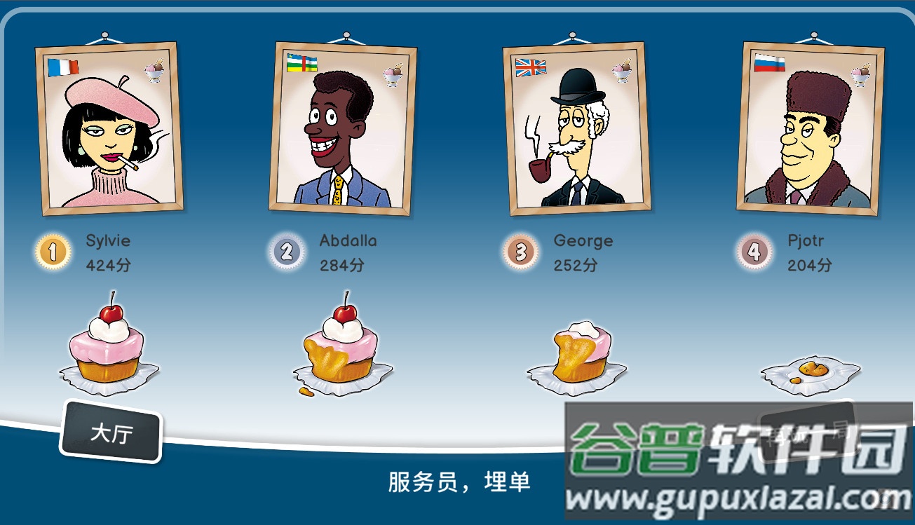 2、目标是在吧台放满之前,成功清理24张桌子即可获胜。