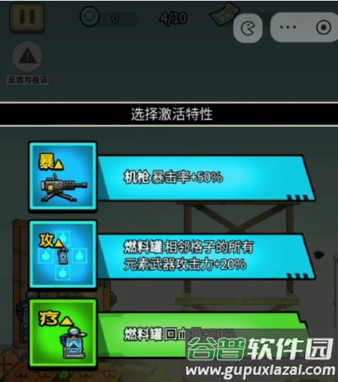关卡尾声会出现三项随机增益选择;在血量充足的前中期,直接选取攻击速度或攻击力加成较为有利;若此时状态不佳,则可以考虑补充燃油储备以维持续航。