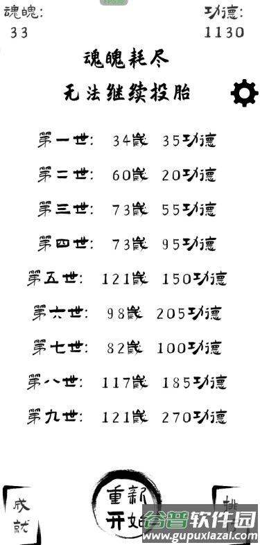 游戏机制围绕六大属性与魂魄功德展开;功德直接关联投胎时的初始点数,功德越高开局越顺利;魂魄类似生命条,归零则游戏结束,功德清零。